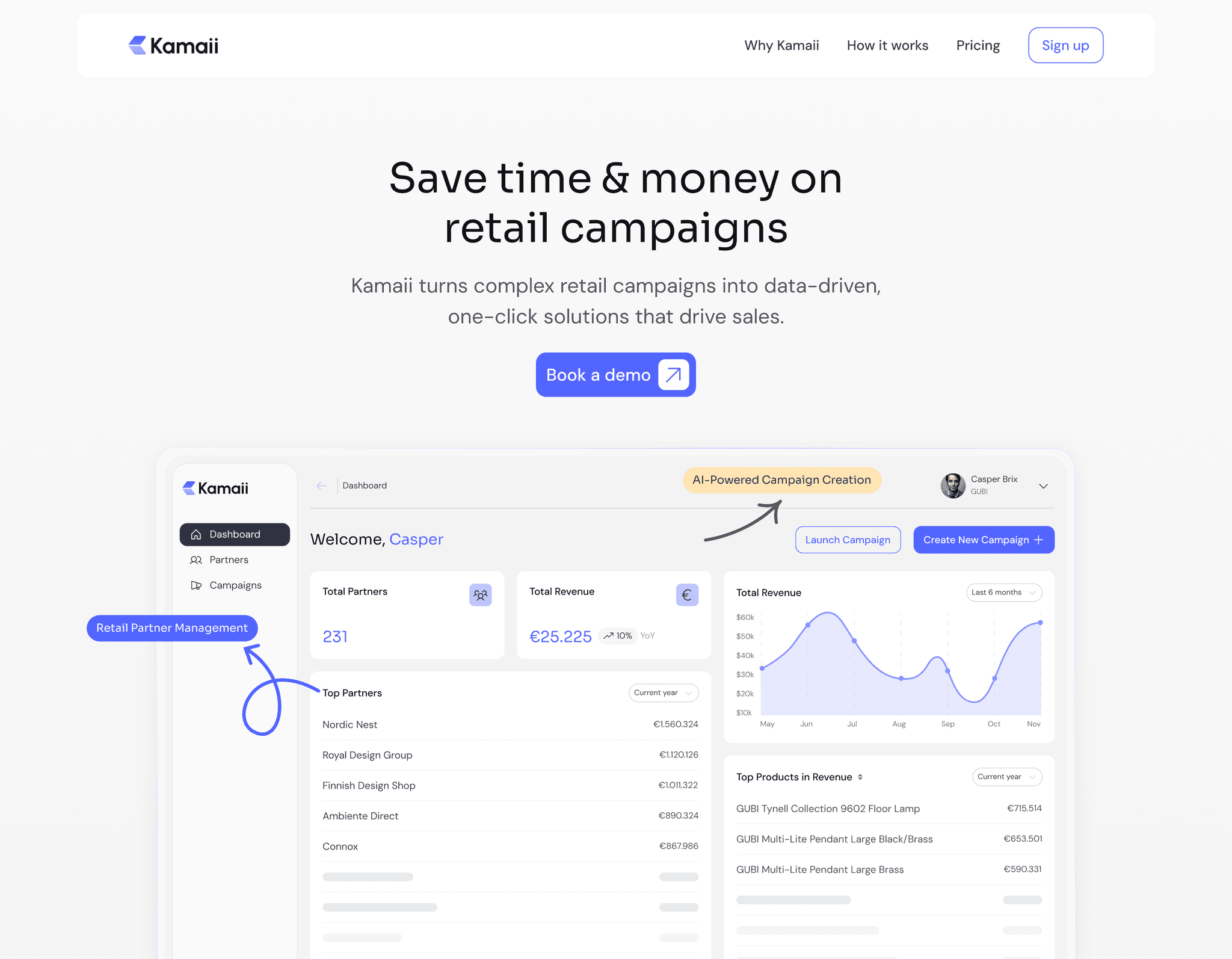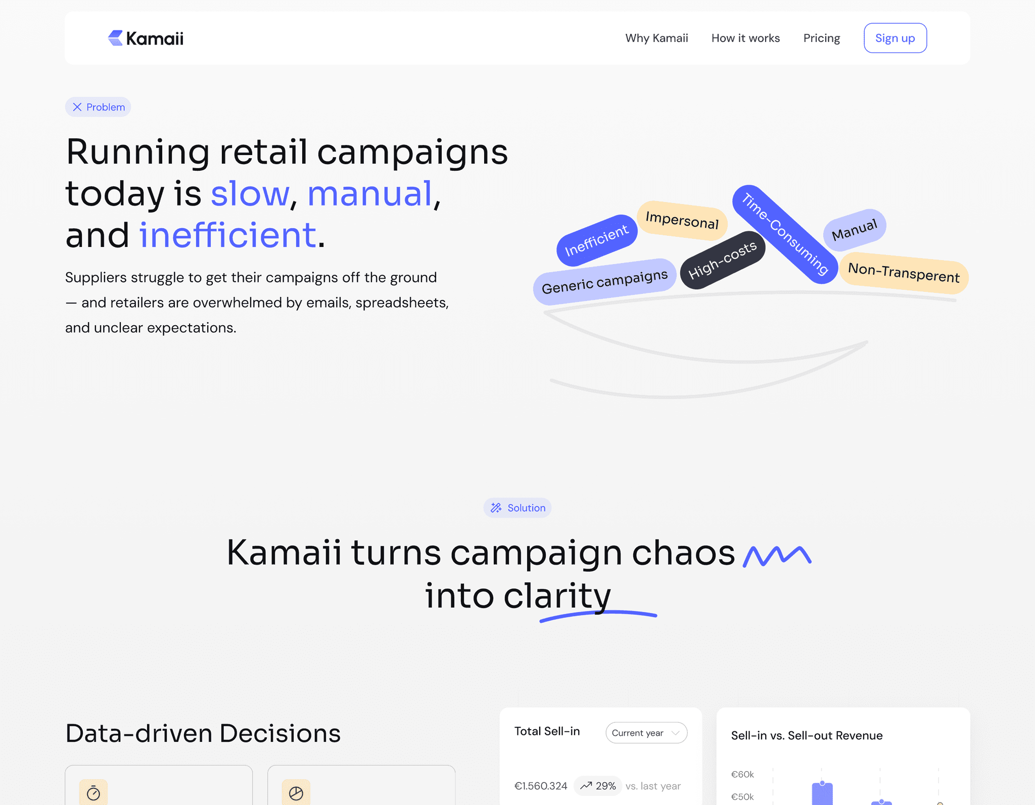 Kamaii is an AI-powered marketing platform that helps suppliers and retailers plan, launch, and manage product campaigns.